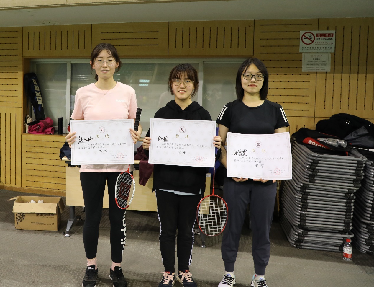 挥汗如雨间,比赛接近尾声。最终,倪天佳老师和向桢同学分别夺得男子单打和女子单打的冠军,龚新奇老师和朱晓宝老师一起摘得男双桂冠,向桢同学和石天奥同学合力拿下混双冠军,全体参赛师生的表现得到了大家的一致好评。最后,由黄志勇老师为各位获奖选手颁奖并合影,本次比赛圆满结束。比赛结果如下: