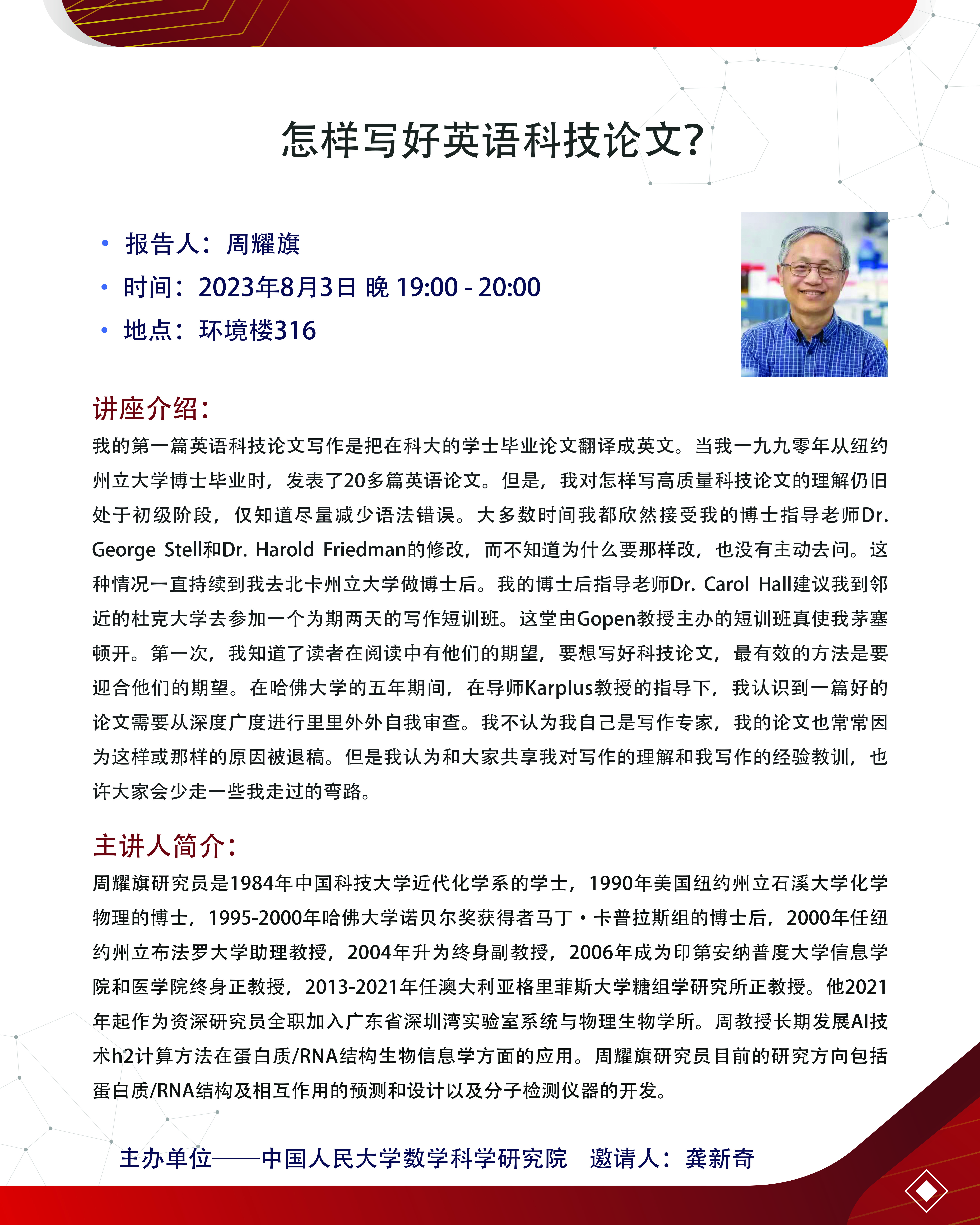 学术报告 | 周耀旗:怎样写好英语科技论文?