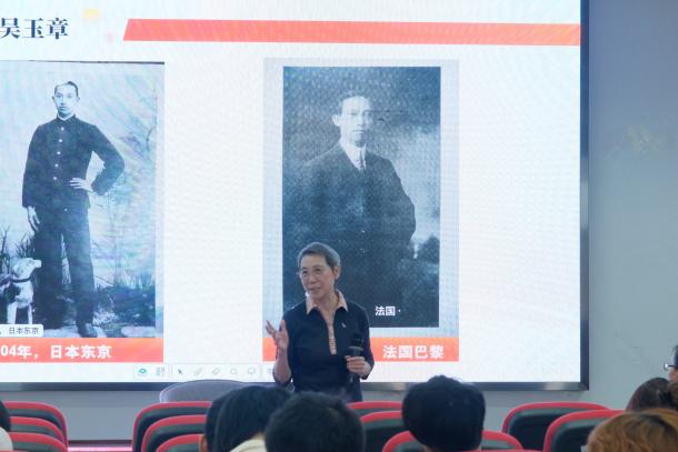 吴本立教授结合珍贵的历史图片,从吴玉章老董事长的人生经历讲起。艰苦的家庭环境与人生境遇培养了吴玉章认真负责、沉静坚毅的优秀品质,吴玉章秉持“不义之财,宁饿死不苟得”的道德信条,始终将国家民族放在心中,从偏远的四川荣县,沿着长江来到上海,后赴日本、法国留学,始终在寻找富国强民的道路,始终战斗在革命第一线。吴玉章董事长一生坚持革命,坚持办教育,毛主席评价他:“一辈子做好事,不做坏事,一贯地有益于广大群众,一贯地有益于青年,一贯地有益于革命”。