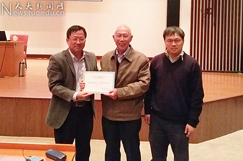讲座结束后,代表数学科学研究院和数学系向张恭庆院士赠送了报告纪念品。