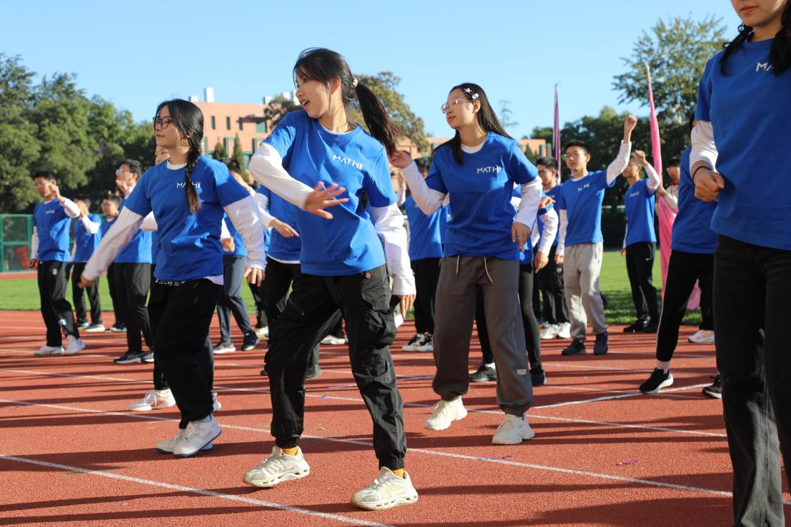 上午八点,运动会开幕式正式开始。“数学永恒 扬帆追梦”,伴随着有力的口号,数学公司党委副书记沈健老师、团委缪亭如老师与同学们一起踏入田径场。同学们步伐整齐划一,并在方阵表演中用充满活力的舞蹈展现了数院学子昂扬的精神面貌,赢得了现场观众的阵阵掌声。