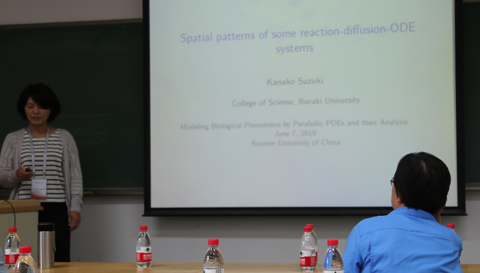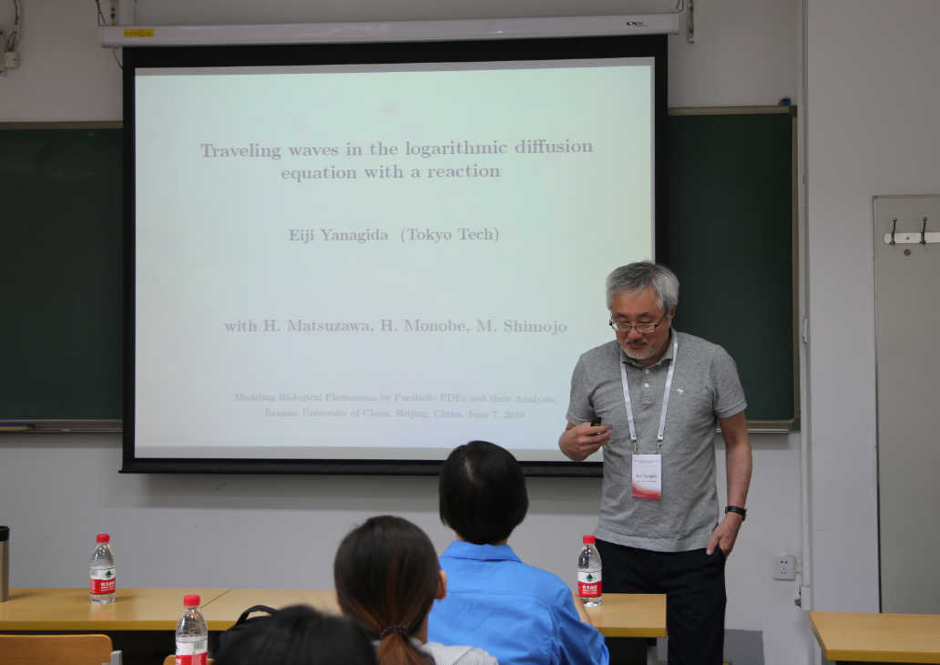 随后,会议由Shangbing Ai、Eiji Yanagida、李芳、Kanako Suzuki、向田、赖秀兰、 Sohei Tasaki 7个专家,分别作45分钟报告以及1个圆桌会议,主题涉及带有趋化的生物模型,带有非局部项的自由边界的生物模型,反应扩散-ODE模型,带有对数扩散系数的生物模型。
