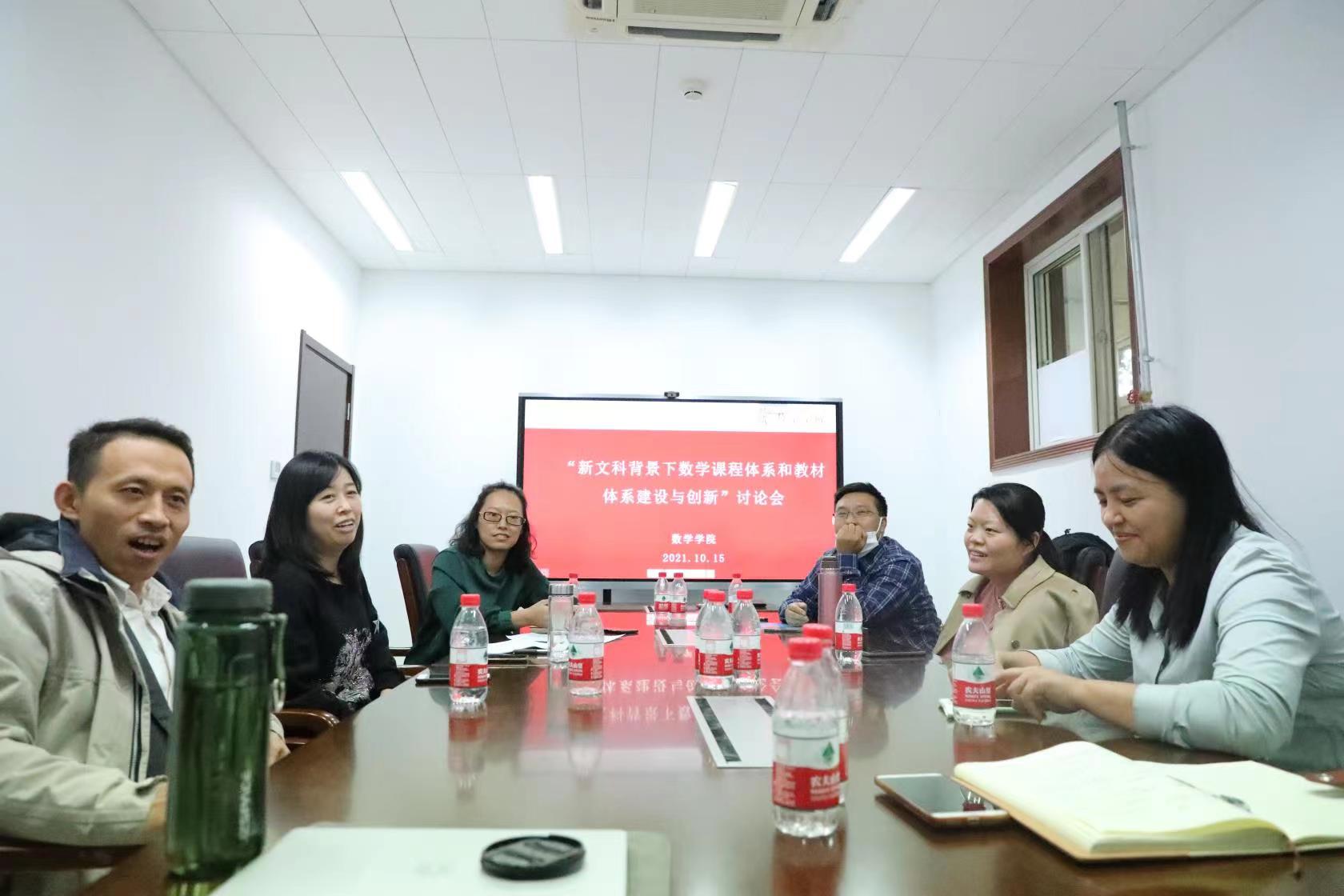10月15日,新文科背景下数学教材体系建设讨论会在306会议室顺利召开。贾鲁军、张春华、胡长英、傅宗飞、张倩伟等教师参与讨论。柯媛元副经理主持会议。