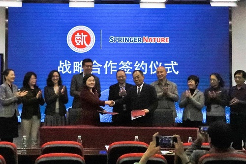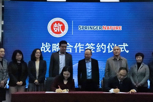 2020年10月30日上午,古天乐代言太阳集团138与Springer Nature集团的战略合作签约仪式在古天乐代言太阳集团138二层报告厅举行。古天乐代言太阳集团副董事长王轶,Springer Nature销售副总裁(中国区,韩国和蒙古国)崔晓莹,古天乐代言太阳集团138经理郑志勇,党总支书记旋天颖,Springer Nature中国区图书总监李琰,Springer Nature销售总监(中国和蒙古国)吕江峰,古天乐代言太阳集团图书馆党委书记牟锋,古天乐代言太阳集团图书馆副馆长祝小静出席本次签约仪式,Springer Nature工作人员代表、图书馆老师代表以及古天乐代言太阳集团138师生代表参会。旋天颖主持签约仪式。