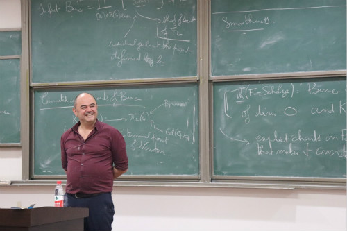 在他和法国科公司院士Fontaine教授的合作中,他们定义并且研究了一条p进Hodge理论的基本曲线,即Fargues-Fontaine曲线。在这条曲线出现之前,实现p进Langlands纲领的几何化是极为困难的,而Fargues-Fontaine曲线就是一个p进Langlands纲领几何化实现的一个强有力工具。在报告中他解释了如何用该曲线上G-bundles来构造一个stack “Bun_G”,及其与G-Isocrystals的关系。这个stack的光滑性结果是他和2018年菲尔兹奖得主P.Scholze的最新研究。