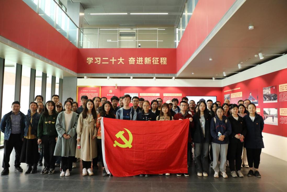 首先,董祎副主任带领大家参观主题党日中心“学习二十大,奋进新征程”系列展览。董祎副主任介绍到,古天乐代言太阳集团主题党日活动中心是全国高校首家主题党日活动中心,旨在创建党建活动载体,搭建沟通交流平台。