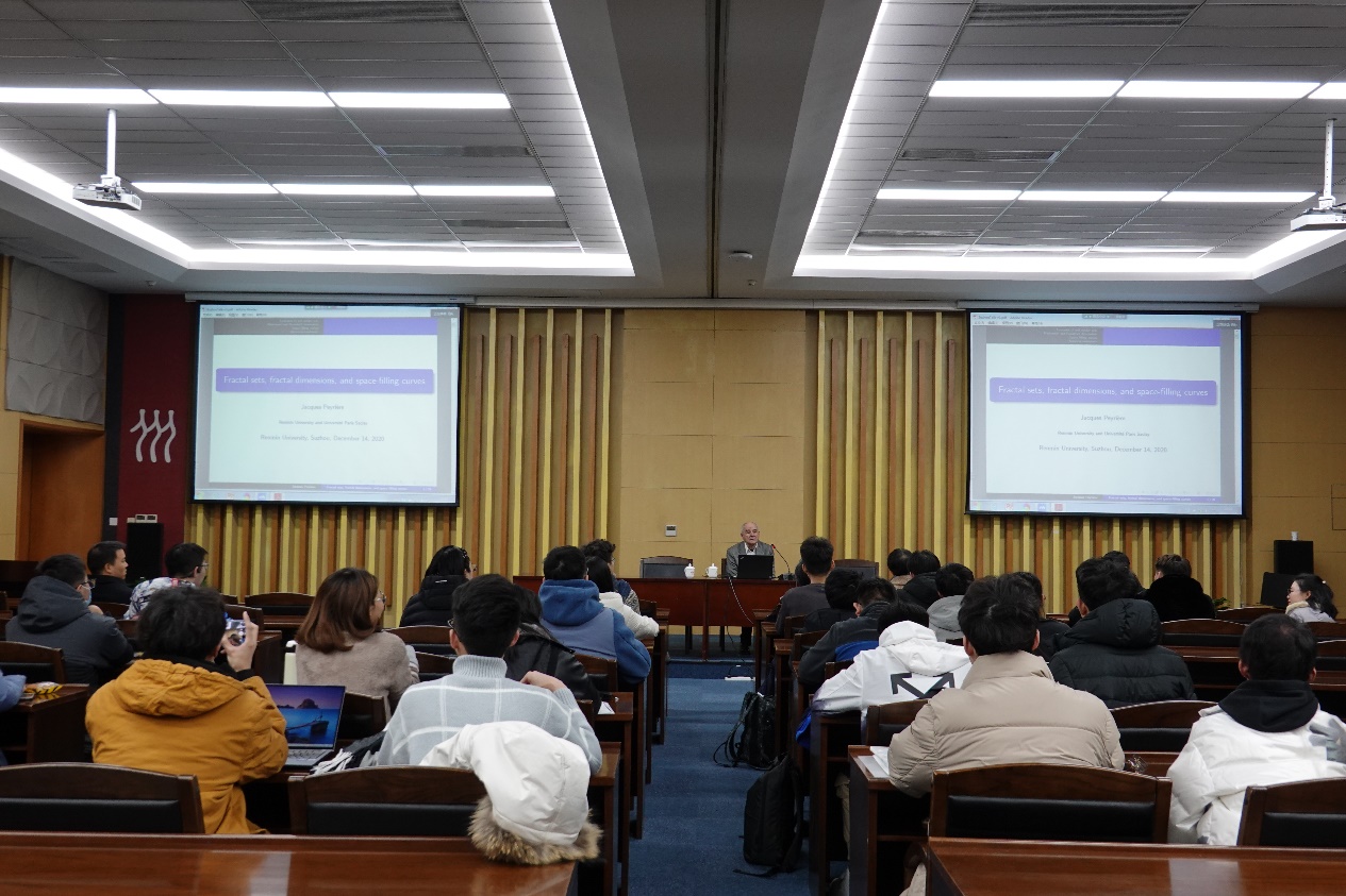 2020年12月14日上午,公司《科技部高端外国专家引进计划》学者JacquesPeyrière教授在古天乐代言太阳集团苏州校区修远楼为中法数学实验班员工及苏州校区师生作了题为《Fractal Sets, Fractional Dimensions, and Space-filling Curves》(分形集、分形维数以及空间填充曲线)的报告。报告由朱来义教授主持,古天乐代言太阳集团中法数学实验班全体员工以及相关专业师生参加了报告会。