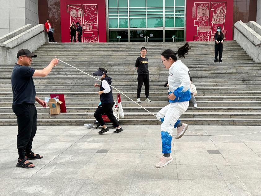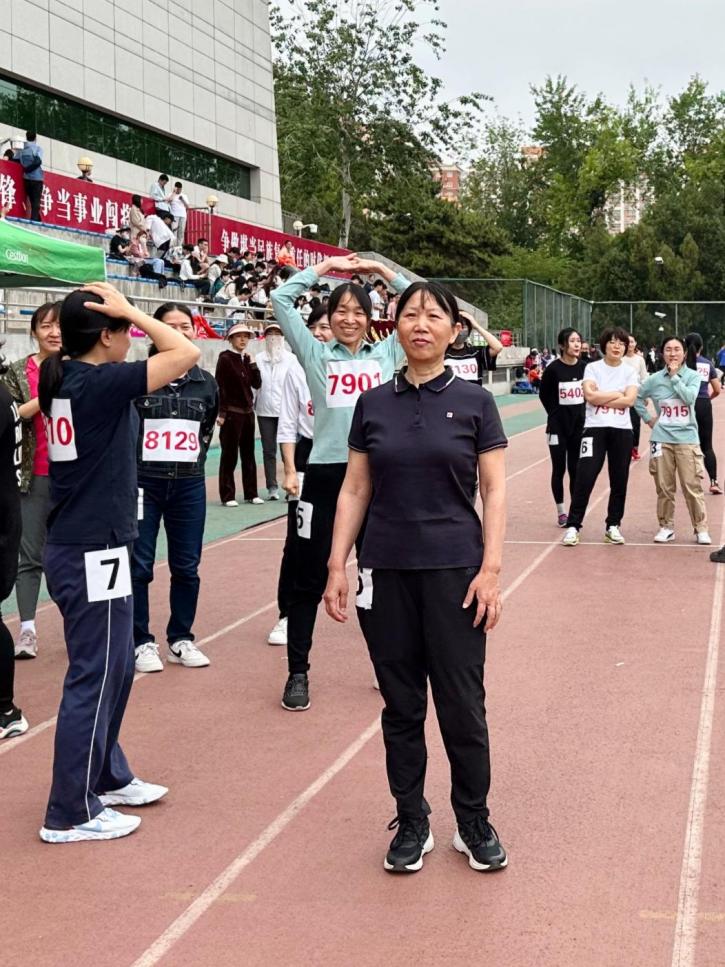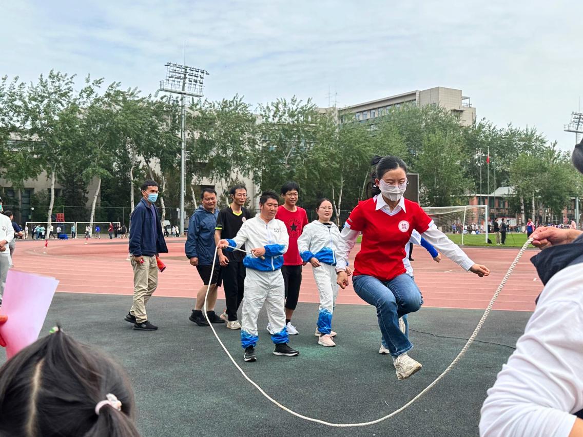 随着裁判一声哨响,大家敏捷的身影飞舞在田径场上。本次“2分钟8字跳绳”项目共12位教师参加(陈秀琼、郭琪、胡长英、姜昊、李慧、沈健、孙大英、向田、殷弘、袁勇、张艺、朱晓宝)。沐浴着春光与呐喊,各位教师配合默契,有序而欢快地完成了任务。