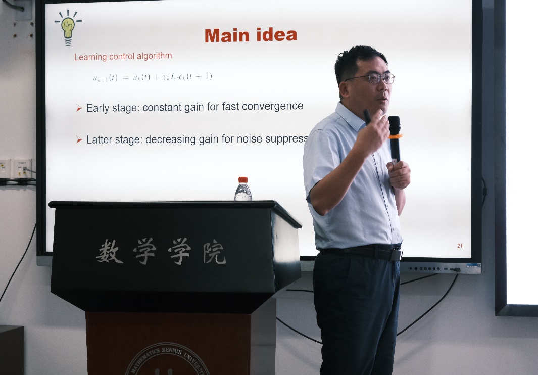 沈栋教授进行题为《随机迭代学习控制中的变增益设计方法》的报告,聚焦随机迭代学习控制领域,他提出了一种变增益设计方法,以应对系统的不确定性和外部干扰。通过仿真实验证明了该方法在提高系统鲁棒性和学习速度方面的有效性,为随机迭代学习控制理论的发展提供了新的视角。
