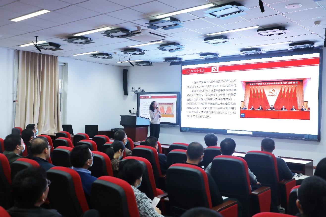 柯媛元从党的十九届六中全会通过的《中共中央关于党的百年奋斗重大成就和历史经验的决议》讲起,梳理了《决议》的内容和结构,《决议》以实现中华民族伟大复兴为主线,分四个阶段总结了党的百年奋斗的主要任务和重大成就,从五个方面概括了党的百年奋斗的历史意义,用“十个坚持”总结了党的百年奋斗的历史经验。